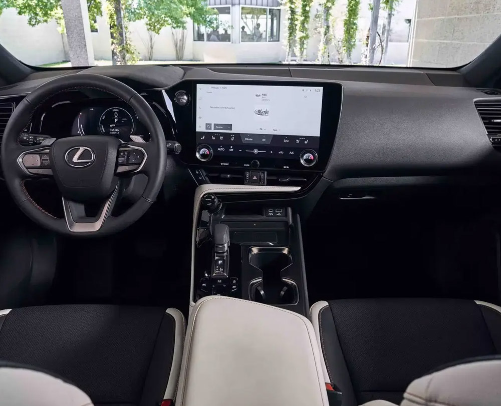 داخل کابین لکسوس NX 2025، شاهد تغییرات چشمگیر و بهبودهای زیادی نسبت به مدل‌های قبلی هستیم که تجربه‌ای لوکس و راحت را برای سرنشینان به ارمغان می‌آورد. مواد باکیفیت، جزئیات دقیق و طراحی شیک این خودرو حس یک فضای مدرن و مجلل را ایجاد کرده است. داشبورد با خطوط نرم و هماهنگ، صفحه نمایش لمسی بزرگ و دکمه‌های کنترلی به‌طور مطلوبی در کنار یکدیگر قرار گرفته‌اند و دسترسی به امکانات مختلف را ساده و راحت می‌کنند.